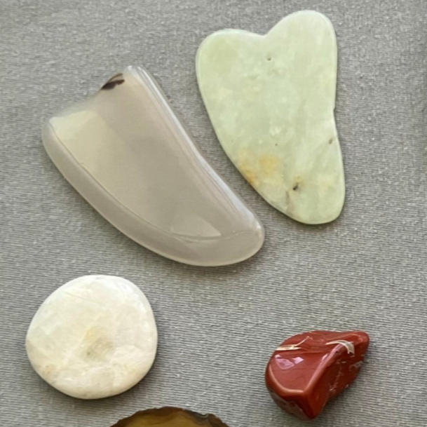 Guasha is een techniek waarbij met een steen, hoorn of hout over de huid geschraapt wordt.